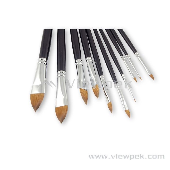 Name : Sable Watercolor Brush - Flibert Item No. : A0021C Size : 0#, 1#, 2#, 4#, 6#, 8#, 10#, 12#, 14#, 16#, 18#, 20# Materials : Sable hair, Brass ferrule, Painted wooden handle Description: