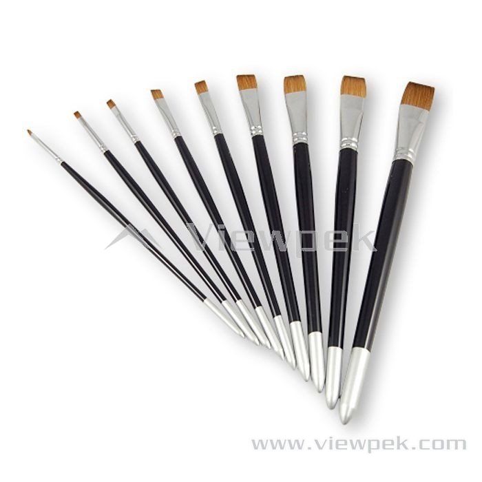 Name : Sable Watercolor Brush - Flat Item No. : A0021B-1 Size : 0#, 1#, 2#, 4#, 6#, 8#, 10#, 12#, 14#, 16#, 18#, 20# Materials : Sable hair, Brass ferrule, Painted wooden handle Description: