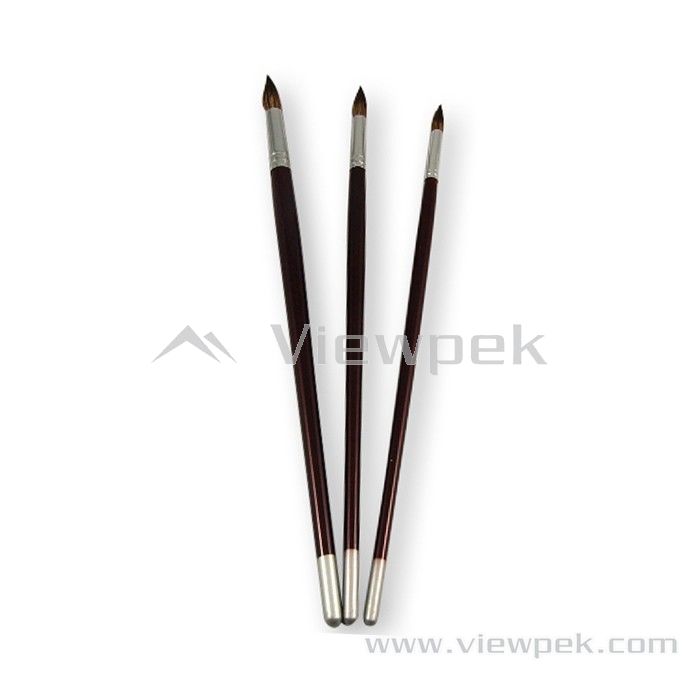 Name : Watercolor Brushes - Round Item No. : A0001C-1 Size : #10, #12, #15 Materials : Mixed hair, Brass ferrule, Painted wooden handle Description: