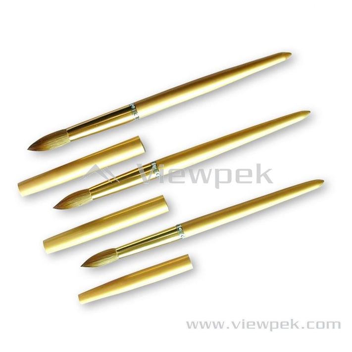 Name : Acrylic Nail Brushes(Round) Item No. : N0127A Size : #8, #10, #12 Materials : Kolinsky hair, Aluminum handle and cap. Description: All sizes: #8, #10, #12, #14, #16, #18, #20, #22 Handle & Cap: Matt-golden aluminum handle & cap, Circled with light-blue Swarovski crystal